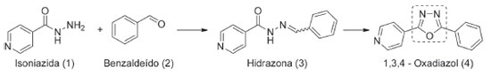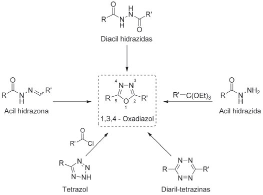 ![]() Figura 1. Vias sintéticas possíveis para obtenção do anel 1,3,4-oxadiazol