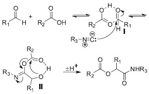 ![]() Esquema 3. Mecanismo proposto para a Reação de Passerini