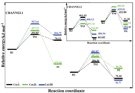 ![]() Figure 5. Curves of IRC pathways in catalytic system by AlCl3/X-ZSM-5 catalyst