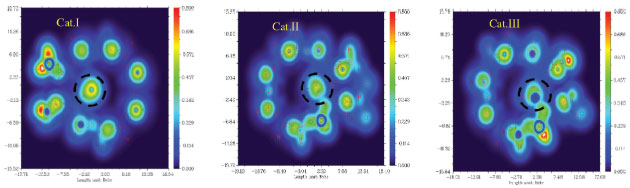 To further validate the above-mentioned inference, we performed LOL analysis, as shown in Figure 6. The locality of active site of Al-Cl (circled by the dotted line) from the strong to the weak is: Cat. I > Cat. II > Cat. III. However, the figure shows that in Cat. I the Cl of Al-Cl is easiest to give delocalized electrons. The delocalized electrons of Cat. III concentrate on the unreactive Al atom, and Cat. II is centered. So the order of catalytic activity is Cat. I > Cat. II > Cat. III. This is also consistent with the calculation of the activation energy. The results of LOL analysis are consistent with the results of the previous catalyst structure analysis (Table 1) and activation energy analysis (Figure 5 and Table 2).