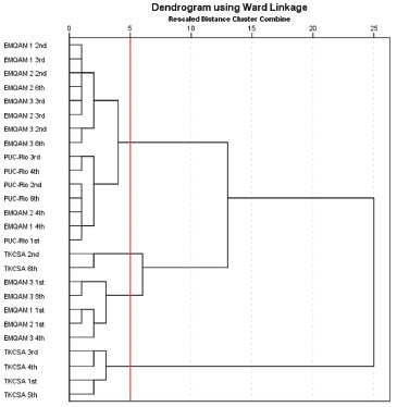 ![]() Figure 7. Dendrogram representing the grouping sample based on the results of the three monitoring stations, the meteorological station and control station (PUC-Rio)