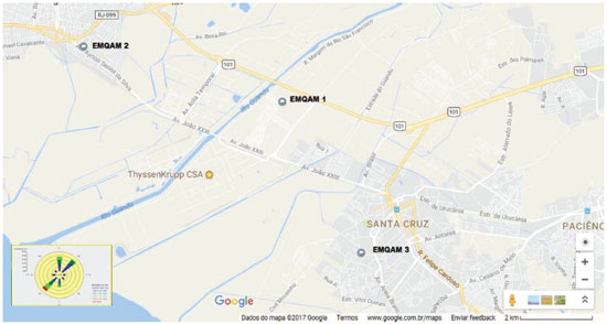 EXPERIMENTAL The study was carried out in the region around the steelwork complex, which is an export oriented steel complex with a nominal annual capacity of 5 million tons of steel that began operating in 2010. In addition to the steel plant itself, the complex also contains a 490 MW coal power plant. The complex is located in the Santa Cruz Industrial District, which belongs to Rio de Janeiro County, and is situated on the border area between Rio de Janeiro and Itaguaí counties. In its vicinity are the Condominium João XXIII, which is a residential complex, and the center of Santa Cruz, which is characterized by the presence of residences and a commercial area. The area also has roads with heavy car, bus, and truck traffic, such as the Rio-Santos highway and Brasil Avenue. Monitoring was done at the locations where steelwork company had installed stations for its air quality monitoring program. The coordinates and spatial locations can be seen in Table S1 and Figure 1.
