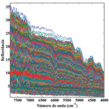 ![]() Figura 1. Espectros NIR sobrepostos em reflectância para os dados brutos da amostra do pellet