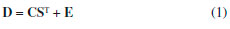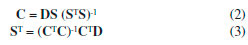 Para a resoluçao da equaçao anterior pelo algoritmo ALS é necessário construir uma estimativa inicial, para que a otimizaçao possa ser começada. Se optarmos por uma estimativa para a matriz S, ela pode ser conseguida através de uma informaçao já conhecida, como espectros das substâncias constituintes do sistema ou um sinal simulado por uma ferramenta matemática que consiga extrair as informaçoes menos aleatórias do sinal original. Além dessa informaçao, restriçoes podem ser aplicadas para limitar as possibilidades de soluçoes para o sistema. Um exemplo sao restriçoes de nao-negatividade, em que soluçoes que contemplem valores negativos para o sinal (S) ou para as concentraçoes relativas (C) sao desconsideradas. Assim, as matrizes C e ST podem ser construídas em ciclos iterativos de duas etapas, conforme mostrado nas Equaçoes 2 e 3:38