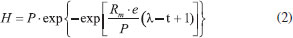 H is the cumulative hydrogen production, t is the time of operation (days), P is the maximum hydrogen production potential (mmol/L), Rm is the maximum hydrogen production rate (mmol/day.L), λ is the lag-phase period (day) and e is 2.71. The hydrogen yield was calculated for each condition by dividing P by the added cellulose mass. One-way analysis of variance (ANOVA) was performed to evaluate the effect of substrate concentration on hydrogen production, using the Minitab 17 software. The values were compared at 5% level of confidence.