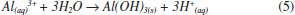 Com o transcorrer da ECF percebeu-se um incremento gradual do pH do meio (Figura 3a), o qual aparentemente se estabiliza no valor de 9. A elevaçao do pH do meio é um comportamento esperado no tratamento de águas residuais de caráter levemente ácido (como o originado na indústria de pescado). Outro efeito a ser considerado é que durante a dissoluçao química do alumínio, íons H + serao consumidos, ocasionando o aumento do pH. Além disso, a reaçao expressa na Equaçao (5) será deslocada para direita, promovendo também o incremento no pH do meio.28