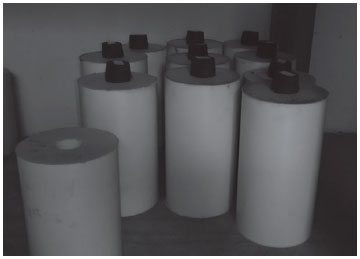 ![]() Figura 1. Corpos de prova do PBX em formato cilíndrico