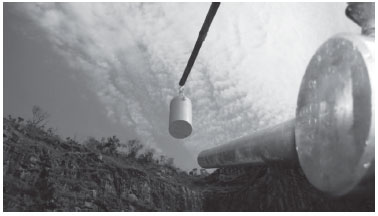 ![]() Figura 3. Sensor piezelétrico apontando para o explosivo
