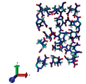 ![]() Figura 4. Célula unitária do β-HMX (legenda de cores: azul = N; vermelho = O; ciano = C; branco = H)