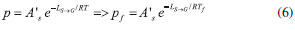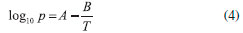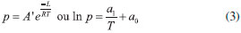 Entretanto, quando a temperatura de fusao aumenta até a temperatura crítica, a Equaçao 3 nao se aplica, pois fornecerá valores de pressao inconsistentes. A equaçao de Antoine, que é resultado do aperfeiçoamento da equaçao de Augusto, é apresentada como Equaçao 4, sendo A o fator de frequência na equaçao de Arrhenius.