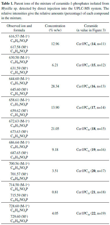 ![]() Figure 3. Ceramide-1-phosphates identified in Myxilla sp.