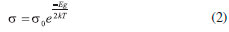 A formaçao de transportadores de carga (e-BC/h+BV) em semicondutores lhes confere condutividade superior a de um isolante nas mesmas condiçoes. Entretanto, a condutividade de ambos os materiais apresenta uma dependência com a temperatura do tipo de Arrhenius,13 à qual se aplica o valor de gap de energia entre o fundo da banda de conduçao (EBC) e o nível de Fermi (Ef) em analogia à Energia de Ativaçao (Ea = EBC - Ef ≈ Eg/2):