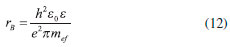 em que rB é o raio de Bohr do éxciton; h é a constante de Planck normalizada; ε0 é a permissividade do vácuo; ε é a constante dielétrica da partícula; "e" é o valor de carga elementar; e mef é a massa efetiva. O rB determina a distância mais provável entre o elétron e a lacuna em um éxciton, de modo que para raios de partículas inferiores ou iguais a rB, observa-se o regime de confinamento forte, no qual a energia cinética de ambos os transportadores supera em muito a sua interaçao coulombiana, podendo, portanto, cada um ser tratado independentemente do ponto de vista energético. A soma de suas energias relativas leva à energia de confinamento que, somada à energia de Band Gap original do material, induz ao novo valor referente a comprimentos de onda de excitaçao mais baixos. Quando o raio da nanopartícula supera o rB até o limite do seu dobro ou triplo, o regime de confinamento é classificado como fraco e, apesar de serem observadas mudanças nos níveis de energia, essas sao muito mais moderadas do que no regime de confinamento forte.17 Particularmente útil é a relaçao que rB apresenta com o Band Gap dos materiais: quanto maiores os valores de Eg, menores os de rB. Essa relaçao mostra que materiais diferentes experimentam o regime de confinamento em tamanhos distintos, como por exemplo: para o PbSe, Eg = 0,26 eV (4769 nm) e rB = 46 nm; para o ZnS, Eg = 3,7 eV (335 nm) e rB = 1,5 nm. Quanto mais isolante for o material (Eg elevado), maior a localizaçao do éxciton (mef maiores) e menores os tamanhos de partícula requeridos para que o material sofra os fatores de confinamento.17 Afora as diferenças nas propriedades ópticas causadas pelo confinamento quântico, a reduçao dos tamanhos de partícula, mesmo a diâmetros de dezenas de nm, ainda apresenta outras particularidades importantes. Ao dividir finamente um material semicondutor dopado, limita-se fortemente a quantidade de sítios de dopante ionizados presentes em cada nanopartícula formada, aproximando-as do estado de semiconduçao intrínseca.38,41 Em alguns casos, quando aplicada concentraçao de dopante análoga ao estado monocristalino, a maioria das partículas encontra-se sem nenhum átomo dopante, enquanto a minoria restante tem de um a dois átomos.41 O esgotamento de transportadores acaba sendo ainda mais pronunciado pelo fato de que filmes nanoparticulados sao penetrados pelo eletrólito interfacial, de modo que para atingir o equilíbrio dos níveis de Fermi entre as fases (Ef = E') observa-se a transferência dos transportadores das partículas aos aceptores no eletrólito, aprofundando ainda mais a depleçao.38,41 A distribuiçao de potencial em semicondutores esféricos foi derivada a partir de uma equaçao linearizada de Poisson-Boltzmann e, a partir dela, determinou-se o decaimento de potencial observado em nanopartículas de acordo com o seu raio (Eq. 13).38
