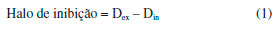 RESULTADOS E DISCUSSAO Atividade antimicrobiana das NPs-ZnO e MCs-Zn Os ensaios de inibiçao microbiológica mostraram atividade antimicrobiana por difusao em meio sólido dos aditivos NPs-ZnO e MCs-Zn, com a formaçao de halos de inibiçao para ambos, conforme pode ser observado na Figura 1. Com as NPs-ZnO frente à S. aureus e E. coli os halos de inibiçao foram de 7,3±0,6 mm e 2,0±1,0 mm, respectivamente. Com as MCs-Zn o valor dos halos de inibiçao foram de 7,0±1,0 mm e 4,7±2,1 mm, respectivamente.
