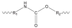 ![]() Figura 1. Estrutura química do monômero uretano, os grupos R1 e R2 correspondem a segmentos aromáticos ou alifáticos
