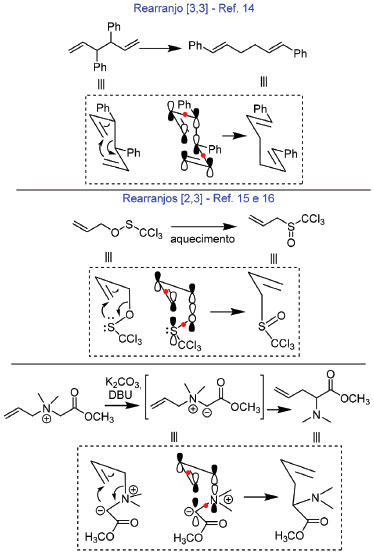 ![]() Esquema 2. Exemplos de rearranjos sigmatrópicos [3,3] e [2,3] racionalizados com a topologia alternativa
