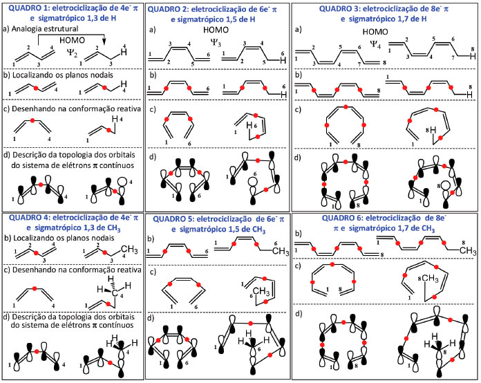 ![]() Figura 1. Alternância de argumentaçao, similaridades e diferenças entre reaçoes pericíclicas térmicas