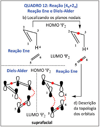 ![]() Figura 6. Deduçao da topologia dos orbitais moleculares de fronteira para as reaçoes térmicas do tipo RANC: Ene e Diels-Alder