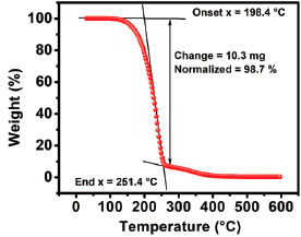 ![]() Figure 2. Typical thermogravimetric curve of fresh biodiesel (FB)