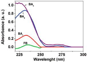 ![]() Figure 6. Typical UV-visible spectra of biodiesel samples oxidized at 100 °C with three different atmospheric air exposure areas (A1<A2<A3)