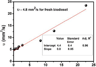 ![]() Figure 7. Kinematic viscosities as a function of the average percentage of oxidation products