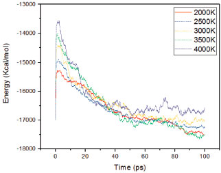Figure 7. Potential energies during NVE-MD simulations of TEA at different temperatures