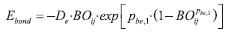 The bond orders BO'ij are then corrected for overcoordination and for residual 1-3 bond orders in valence angles. A corrected bond order (BOij) is used to calculate the bond energies: