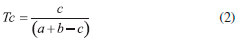 A escolha do tipo de fingerprint molecular irá influenciar significativamente o resultado da busca virtual. Dentro do nosso conhecimento, nao existe um único tipo de fingerprint molecular que seja sempre capaz de encontrar todos os compostos com atividade biológica. Recentemente, encontram-se na literatura publicaçoes comparando os diferentes tipos de fingerprints moleculares.109 Uma vez que os fingerprints tenham sido gerados, estes podem ser comparados usando diferentes medidas de similaridade, sendo o coeficiente de Tanimoto (Tc), representado pela Equaçao 2, a mais comumente empregada.106,110 Assim, o valor do Tc entre as moléculas A e B é calculado dividindo o número de bits iguais a 1 nas duas moléculas ("c", bits comuns, mostrado no numerador) pelo resultado da soma do número de bits iguais a 1 na molécula A ("a") e na molécula B ("b") subtraindo-se o número de bits comuns às duas ("c"). ![]() O valor do Tc varia de 0 a 1, significando 0 (zero) nenhuma sobreposiçao entre os fingerprints e 1 (um) uma completa sobreposiçao dos fingerprints. A magnitude do valor do Tc depende do número de bits presentes nos fingerprints. Assim, quanto maior a molécula de referência, maiores serao os valores de Tc. Num filtro de similaridade 2D, como valor de corte do Tc, sugere-se escolher aquele capaz de diferenciar compostos ativos dos inativos (denominados, geralmente, de decoys).111 Na busca virtual, estes filtros podem ser usados para encontrar compostos estruturalmente semelhantes a determinado(s) composto(s) que já apresente(m) a atividade biológica de interesse.112 Desta forma, um dos fatores que afeta o sucesso dos filtros de similaridade 2D é a escolha da molécula de referência, pois nem todas as regioes da molécula sao igualmente relevantes para a atividade biológica. Os filtros de similaridade 2D sao um dos filtros mais simples de serem utilizados na busca virtual, podendo ser aplicados mesmo quando as informaçoes sobre a relaçao entre estrutura e atividade biológica sao ainda bastante limitadas.112 Outra aplicaçao da similaridade 2D é no agrupamento de compostos previamente selecionados por outros filtros, escolhendo-se um composto como representativo de cada grupo. Uma das vantagens da similaridade 2D é seu baixo custo computacional, podendo ser aplicada a bancos de dados com um grande número de compostos.112 No entanto, sua principal limitaçao é nao considerar a conformaçao 3D da molécula.110 E, ainda, nao menos importante é a ocorrência de compostos similares apresentando, no entanto, atividades biológicas distintas, denominados "activity cliffs".113-115
