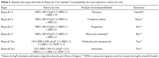 REFERENCIAS E NOTAS 1. Ravina, E.; The Evolution of Drug Discovery: From Traditional Medicines to Modern Drugs John Wiley & Sons: New York, 2011. 2. Viegas, C.; Bolzani, V. da S.; Barreiro, E. J.; Quim. Nova 2006, 29, 326. 3. Malvezzi, A.; Tese de Doutorado, Universidade de Sao Paulo, Sao Paulo, 2008. 4. Kubinyi, H.; Industrial Pharmacy 2004, 7. 5. Faller, B.; Ottaviani, G.; Ertl, P.; Berellini, G.; Collis, A.; Drug Discovery Today 2011, 16, 976. 6. Kubinyi, H.; J. Recept. Signal Transduct. Res. 1999, 19, 15. 7. Kubinyi, H.; Nat. Rev. Drug Discovery 2003, 2, 665. 8. Rollinger, J. M.; Stuppner, H.; Langer, T.; Prog. Drug Res. 2008, 65, 211. 9. Cumming, J. G.; Davis, A. M.; Muresan, S.; Haeberlein, M.; Chen, H.; Nat. Rev. Drug Discovery 2013, 12, 948. 10. Mignani, S.; Huber, S.; Tomás, H.; Rodrigues, J.; Majoral, J. P.; Drug Discovery Today 2016, 21, 573. 11. Kubinyi, H.; Em Computer Applications in Pharmaceutical Research and Development; Ekins, S. ed.; 1ed., John Wiley & Sons, Inc.: Hoboken, NJ, USA, 2006, cap. 16. 12. Kubinyi, H.; Proceedings of the Beilstein Bozen symposium - The Chemical Theatre of Biological Systems, Bozen, Italy, 2004, 51. 13. Kubinyi, H.; Em Computational and Structural Approaches to Drug Discovery: Ligand-Protein Interactions; Stroud, R. M.; Finer-Moore, J. eds.; 1ed., Royal Society of Chemistry: Cambridge, UK, 2007, cap. 2. 14. Hansch, C.; Fujita, T.; J. Am. Chem. Soc. 1964, 86, 1616. 15. Kubinyi, H.; QSAR: Hansch Analysis and Related Approaches Wiley-VCH Verlag GmbH: Weinheim, 1993. 16. Free, S. M.; Wilson, J. W.; J. Med. Chem. 1964, 7, 395. 17. Todeschini, R.; Consonni, V.; Mauri, A.; Pavan, M.; Anal. Chim. Acta 2004, 515, 199. 18. Topliss, J. G.; Em Computer Aided Drug Design in Industrial Research; Herrmann, E. C.; Franke, R. eds.; Springer Berlin Heidelberg: Berlin, Heidelberg, 1995, cap. 2. 19. Fujita, T.; Winkler, D. A.; J. Chem. Inf. Model. 2016, 56, 269. 20. Cramer, R. D.; J. Comput. Aided. Mol. Des. 2012, 26, 35. 21. Gola, J.; Obrezanova, O.; Champness, E.; Segall, M.; QSAR Comb. Sci. 2006, 25, 1172. 22. Luo, M.; Wang, X. S.; Roth, B. L.; Golbraikh, A.; Tropsha, A.; J. Chem. Inf. Model. 2014, 54, 634. 23. Cherkasov, A.; Muratov, E. N.; Fourches, D.; Varnek, A.; Baskin, I. I.; Cronin, M.; Dearden, J.; Gramatica, P.; Martin, Y. C.; Todeschini, R.; Consonni, V.; Kuz'min, V. E.; Cramer, R.; Benigni, R.; Yang, C.; Rathman, J.; Terfloth, L.; Gasteiger, J.; Richard, A.; Tropsha, A.; J. Med. Chem. 2014, 57, 4977. 24. Kubinyi, H.; Drug Discovery Today 1997, 2, 538. 25. Dias, R. L. A.; Corrêa, A. G.; Quim. Nova 2001, 24, 236. 26. Ferreira, R. S.; Glaucius, O.; Andricopulo, A. D.; Quim. Nova 2011, 34, 1770. 27. Mayr, L. M.; Bojanic, D.; Curr. Opin. Pharmacol. 2009, 9, 580. 28. Kirchmair, J.; Markt, P.; Distinto, S.; Schuster, D.; Spitzer, G. M.; Liedl, K. R.; Langer, T.; Wolber, G.; J. Med. Chem. 2008, 51, 7021. 29. Klebe, G.; Drug Discovery Today 2006, 11, 580. 30. Chen, W. N.; Nitsche, C.; Pilla, K. B.; Graham, B.; Huber, T.; Klein, C. D.; Otting, G.; J. Am. Chem. Soc. 2016, 138, 4539. 31. Berman, H. M.; Battistuz, T.; Bhat, T. N.; Bluhm, W. F.; Bourne, P. E.; Burkhardt, K.; Feng, Z.; Gilliland, G. L.; Iype, L.; Jain, S.; Fagan, P.; Marvin, J.; Padilla, D.; Ravichandran, V.; Schneider, B.; Thanki, N.; Weissig, H.; Westbrook, J. D.; Zardecki, C.; Acta Crystallogr., Sect. D: Biol. Crystallogr. 2002, 58, 899. 32. Behnen, J.; Köster, H.; Neudert, G.; Craan, T.; Heine, A.; Klebe, G.; ChemMedChem 2012, 7, 248. 33. Glen, R. C.; Future Med. Chem. 2011, 3, 399. 34. Hopkins, A. L.; Groom, C. R.; Nat. Rev. Drug Discovery 2002, 1, 727. 35. Lipinski, C. A.; Lombardo, F.; Dominy, B. W.; Feeney, P. J.; Adv. Drug Deliv. Rev. 2001, 46, 3. 36. Meanwell, N. A.; Chem. Res. Toxicol. 2011, 24, 1420. 37. Bologa, C. G.; Oprea, T. I.; Em Bioinformatics and Drug Discovery; Larson, R. S. ed.; Humana Press: Totowa, 2012, cap. 7. 38. Kirchmair, J.; Göller, A. H.; Lang, D.; Kunze, J.; Testa, B.; Wilson, I. D.; Glen, R. C.; Schneider, G.; Nat. Rev. Drug Discovery 2015, 14, 387. 39. Rondeau, J.-M.; Schreuder, H.; Em The Practice of Medicinal Chemistry; Wermuth, C. G. ed.; 3a ed., Elsevier: Amsterdam, 2008, cap. 30. 40. Kawakami, Y.; Inoue, A.; Kawai, T.; Wakita, M.; Sugimoto, H.; Hopfinger, A. J.; Bioorg. Med. Chem. 1996, 4, 1429. 41. von Itzstein, M.; Wu, W.-Y.; Kok, G. B.; Pegg, M. S.; Dyason, J. C.; Jin, B.; Van Phan, T.; Smythe, M. L.; White, H. F.; Oliver, S. W.; Colman, P. M.; Varghese, J. N.; Ryan, D. M.; Woods, J. M.; Bethell, R. C.; Hotham, V. J.; Cameron, J. M.; Penn, C. R.; Nature 1993, 363, 418. 42. Wade, R. C.; Structure 1997, 5, 1139. 43. Capdeville, R.; Buchdunger, E.; Zimmermann, J.; Matter, A.; Nat. Rev. Drug Discovery 2002, 1, 493. 44. Maibaum, J.; Feldman, D. L.; Annu. Rep. Med. Chem. 2009, 44, 105. 45. Weber, A. E.; Thornberry, N.; Annu. Rep. Med. Chem. 2007, 42, 95. 46. Irwin, J. J.; Shoichet, B. K.; J. Med. Chem. 2016, 59, 4103. 47. Swinney, D. C.; Anthony, J.; Nat. Rev. Drug Discovery 2011, 10, 507. 48. De Vivo, M.; Masetti, M.; Bottegoni, G.; Cavalli, A.; J. Med. Chem. 2016, 59, 4035. 49. Stank, A.; Kokh, D. B.; Fuller, J. C.; Wade, R. C.; Acc. Chem. Res. 2016, 49, 809. 50. Sotriffer, C. A.; Curr. Top. Med. Chem. 2011, 11, 179. 51. Wieder, M.; Garon, A.; Perricone, U.; Boresch, S.; Seidel, T.; Almerico, A. M.; Langer, T.; J. Chem. Inf. Model. 2017, 57, 365. 52. Hit é um composto com estrutura identificada/conhecida que possui uma atividade em um ensaio biológico abaixo de determinado valor corte. 53. Lead é um composto (ou uma série de compostos) com atividade e seletividade comprovada através de ensaios biológicos que, ainda, preenchem alguns critérios importantes para desenvolvimento de um fármaco como originalidade, patentiabilidade e acessibilidade. 54. Brown, F. K.; Sherer, E. C.; Johnson, S. A.; Holloway, M. K.; Sherborne, B. S.; J. Comput. Aided. Mol. Des. 2017, 31, 255. 55. Muegge, I.; Bergner, A.; Kriegl, J. M.; J. Comput. Aided. Mol. Des. 2017, 31,