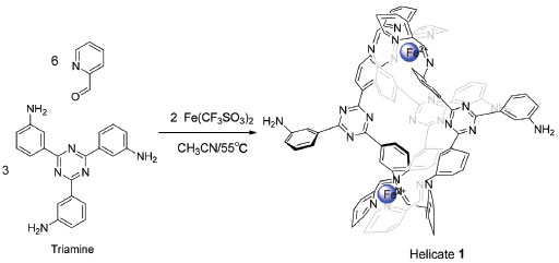 | Self-assembly and host-guest behaviors of a supramolecular helicate FeII2L3 |