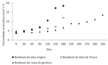 ![]() Figura 3. Viscosidade de biodiesel armazenado em lata