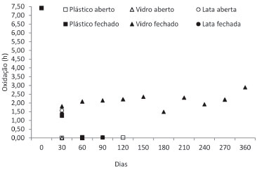 ![]() Figura 4. Estabilidade à oxidaçao em condiçoes de estocagem diferenciadas