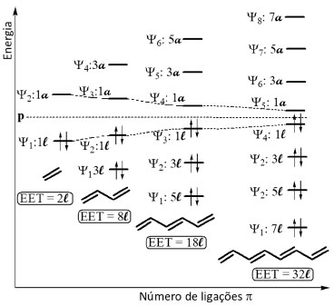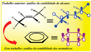 ![]() Figura 1. Dos alcenos aos polienos e aromáticos: estabilidade e orbitais moleculares