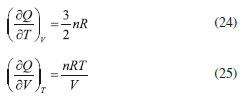 APLICAÇAO DO CRITÉRIO DE EULER NAS DIFERENCIAIS DE FUNÇOES DE ESTADO E DE VARIAVEIS DE PROCESSO Frequentemente, a diferenciaçao entre as funçoes de estado e variáveis de processo é feita de forma indutiva ou através de exemplos numéricos para evidenciar que as variaçoes nos valores dessas propriedades sao independentes do caminho, como resultado da Equaçao 5. O recurso mais utilizado é a criaçao de caminhos cíclicos para um sistema gasoso ideal e a realizaçao de cálculos em etapas reversíveis, cujo resultado levará a zero a integral cíclica da funçao de estado e a valores nao-nulos para a variável de processo: ![]() Aqui apresentamos o critério de Euler como uma alternativa matematicamente mais elegante, na qual trabalhamos diretamente com as diferenciais sem a necessidade da criaçao de processos cíclicos reversíveis e o cálculo das integrais. Nos cursos iniciais de físico química, o gás ideal é o sistema termodinâmico mais estudado devido principalmente à simplicidade da equaçao de estado Considerando como exemplo a variável P e a isolando na equaçao de estado dos gases ideais (Equaçao 14) e de van der Walls (Equaçao 15), em que P é funçao de T e V em ambos os casos, temos: ![]() Logo, calculando as derivadas primeiras para P no gás ideal, temos: ![]() Finalmente, calculando as derivadas cruzadas, ainda no caso do gás ideal, tem-se a igualdade entre ambas e a prova de que P é uma funçao de estado: ![]() Do mesmo modo, provamos que P é funçao de estado para o gás de van der Walls, encontrando-se as derivadas primeiras (Equaçoes 19 e 20) e, finalmente, a igualdade entre derivadas cruzadas (Equaçao 21): ![]() Considerando que a pressao P especifica o estado macroscópico de um sistema, especialmente no caso de gases, além de compor as equaçoes de estado utilizadas, os resultados encontrados devem ser esperados. Entretanto, a manipulaçao das diferenciais solidifica o rigor matemático nos estudantes que estao em contato inicial com a termodinâmica. Além disso, o mesmo cálculo simples pode ser feito para as propriedades termodinâmicas V e T a partir das equaçoes de estado dos gases perfeitos e reais. Considerando as variáveis de processo, estas nao estao contidas nas equaçoes de estado, pois nao descrevem um sistema termodinâmico. Porém pode-se obter suas diferenciais combinando expressoes convenientes no resultado da primeira lei (Equaçao 22): ![]() Como ainda provaremos, as equaçoes diferenciais obtidas com as variáveis de processo sao inexatas e muitos livros textos diferenciam as notaçoes para representar as diferenciais de Q e W.9-15 Ressalta-se que a utilizaçao dessas diferentes notaçoes nao prejudica o entendimento da teoria e pode ser vista como um "artifício de ensino" para distinguir variáveis de processo e funçoes de estado. Entretanto, nós preferimos, assim como outros autores,25,26 a nao utilizaçao das diferentes notaçoes, pois entendemos que prejudica o elo necessário entre a teoria física e seu formalismo matemático. De fato, baseado em textos sobre equaçoes diferenciais, nao existe a distinçao entre as diferenciais (em exatas ou inexatas) porque esta é feita na soluçao das equaçoes e nao pela diferencial propriamente dita.27-29 Finalmente, o critério de Euler é mais do que suficiente para tal distinçao. Para obter uma diferencial de duas variáveis para Q, podemos utilizar novamente o gás ideal como sistema modelo, donde ![]() Considerando Q = f(T,V) e escrevendo dQ = (∂Q/∂T)VdT + (∂Q/∂V)TdV, encontramos diretamente as derivadas primeiras: ![]() calculando as derivadas cruzadas encontramos: ![]() Portanto, como as derivadas cruzadas de Q sao diferentes, o critério de Euler garante que seus valores finitos dependem do caminho de integraçao, ou seja, Q nao é uma funçao de estado. Do ponto de vista físico-químico, este é o motivo pelo qual temos expressoes diferentes para o cálculo de Q, dependendo do tipo de processo. Além disso, os valores de Q e W também nao podem ser calculados pela mesma expressao percorrendo caminhos reversíveis e irreversíveis. Ainda considerando as diferenciais de Q, pode-se trabalhar com os estudantes de termodinâmica a obtençao de expressoes para sistemas mais complexos, nos quais consideram-se moléculas lineares, nao-lineares e as contribuiçoes das energias de vibraçao, rotaçao e de interaçao intermolecular. Os mesmos resultados serao encontrados sem muito esforço matemático. Em uma das obras aqui citadas, o autor demonstra as expressoes para energia interna de sistemas nao-ideais de forma simples e elegante.22 Para estudarmos a diferencial de trabalho podemos utilizar novamente a equaçao de estado dos gases ideais e reescrever a diferencial dV em duas variáveis. Sabemos que V = nRT/P e, portanto, V = f(T,P). Logo, podemos escrever: ![]() uma vez que dW = -PdV, pode-se substituir a diferencial de dV (Equaçao 29) para obtermos uma nova expressao para dW em duas variáveis: ![]() Considerando W = f(T,P), temos de imediato as derivadas primeiras: (∂W/∂T)P = –nR e (∂W/∂P)T = nRT/P. Calculando as derivadas cruzadas, mostramos finalmente que W nao é uma funçao de estado: ![]()