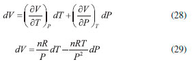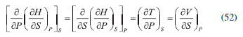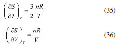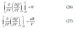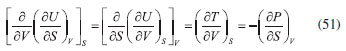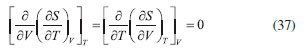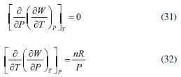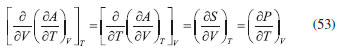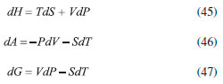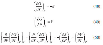 AS RELAÇOES DE MAXWELL O uso do critério de Euler nao se limita, obviamente, à pesquisa e distinçao entre funçoes de estado e variáveis de processo. Sem dúvida, uma das mais importantes consequências do formalismo matemático das equaçoes diferenciais em termodinâmica reside nas relaçoes de Maxwell. Estas inter-relacionam as derivadas parciais das diferenciais das energias, fornecendo uma maneira útil e simples de mensurar taxas de variaçoes entre propriedades termodinâmicas de difícil acesso experimental em certas condiçoes de contorno. As diferenciais de energia, aqui referidas, também conhecidas como equaçoes de Gibbs, sao também consideradas as equaçoes fundamentais mais importantes da termodinâmica química. Isso porque suas diferenciais contêm as consequências de todas as leis da termodinâmica e o cálculo de suas integrais fornece o valor da energia que pode ser extraída/fornecida de um sistema submetido a um processo reversível. Além disso, toda a informaçao acerca da espontaneidade do processo pode ser extraída dessas equaçoes considerando apenas o sistema e nao o universo. As diferenciais para a energia interna (U), entalpia (H), energia de Helmholtz (A) e de Gibbs (G) sao explicitadas a seguir, considerando um sistema homogêneo, fechado e em equilíbrio material. Pode-se notar que todas sao combinaçoes de funçoes de estado (T, P, V ou S) e, consequentemente, todas sao funçoes de estado. Provamos essa informaçao para a energia interna reescrevendo a Equaçao 22, sabendo que dQ = TdS e dW = -PdV: ![]() substituindo dS pela sua diferencial (Equaçao 34), temos: ![]() como nRT/V = P, a Equaçao 42 terá o coeficiente zero para dV: ![]() logo, tomando U = f(T, V), temos: ![]() Tomando as quatro diferenciais de energia obteremos a seguir as relaçoes de Maxwell com o critério de Euler. Para as funçoes H, A e G, temos as seguintes diferenciais: ![]() Calcularemos as derivadas primeiras e cruzadas apenas para G, entretanto, a obtençao para as demais se dá a partir de raciocínio análogo, e seus resultados se encontram em qualquer livro texto de termodinâmica. ![]() Finalmente, de forma análoga, temos para U: ![]() para H: ![]() para A: ![]()