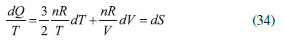 O FATOR DE INTEGRAÇAO EM TERMODINAMICA O fator de integraçao tem sua importância revelada nesta seçao com a obtençao da diferencial de uma das funçoes de estado mais importantes: a entropia (S). No estudo da segunda lei, a definiçao de entropia é normalmente induzida com a análise de um processo cíclico, convencionalmente o de Carnot. Aplicando a equaçao 22 nesse ciclo, normalizada pela temperatura, obtém-se uma expressao para o cálculo de S para processos macroscópicos reversíveis e prova-se, imediatamente, que S é uma funçao de estado com o resultado da Equaçao 33: ![]() Aqui o método de Leibniz pode ser explorado de uma maneira elegante para se obter a prova de que S é uma funçao de estado. Tomando a diferencial para calor (Equaçao 23), é fácil mostrar que o inverso da temperatura (1/T) atua como o fator integrante: ![]() observando que S = f(T,V) e escrevendo dS = (∂S/∂T)VdT + (∂S/∂V)TdV , encontramos diretamente as derivadas primeiras: ![]() calculando as derivadas cruzadas: ![]() É interessante notar que o resultado encontrado para S, a partir da diferencial dQ, pode ser estendido para outras variáveis de processo em termodinâmica. O fator de integraçao nos garante que a razao entre qualquer variável de processo e qualquer propriedade termodinâmica irá resultar em uma nova funçao de estado. Aproveitando as diferenciais já escritas neste texto, vamos definir como exemplo uma funçao Z com a seguinte razao: ![]() utilizando a Equaçao 30 para dW, obtemos uma diferencial de duas variáveis conveniente para dZ: ![]() Notemos que a diferencial -dZ é equivalente à diferencial dV (Equaçao 29) e, portanto, dZ satisfaz o critério de Euler: ![]()