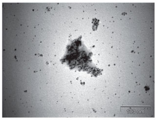 ![]() Figure 5. TEM image of a sample containing KOH, HAuCl4 and 0.002 mol L-1 β-cyclodextrin after heating for 20 minutes