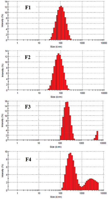 ![]() Figure 1. Particle size distributions of the unloaded nanoemulsions (F1-F4)