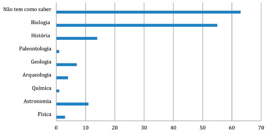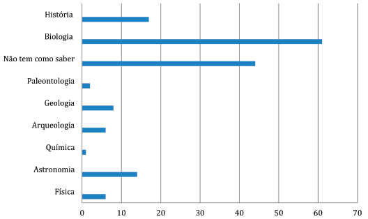 ![]() Figura 2. Gráfico da predominância das diferentes áreas do conhecimento nos centros e museus de ciências que possuem sítio eletrônico