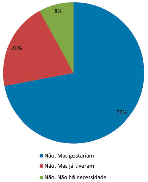 Daqueles que nao mantêm convênio com a universidade (Figura 5), 23% gostariam de estabelecer interaçao, 6% já tiveram e apenas 3% dos respondentes nao percebem necessidade em trabalhar em parceria com universidades.