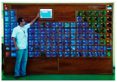 Ainda para exemplificar a presença da área sem a exposiçao de reagentes ou a necessidade de pessoal permanente para lidar com o público, encontrou-se no sítio do Centro de Ciências da Universidade Federal de Juiz de Fora uma tabela periódica interativa (Figura 10). Com o auxílio de um monitor de televisao, o visitante pode interagir e conhecer algumas das propriedades dos elementos químicos.