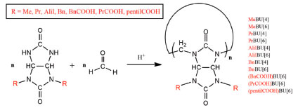 ![]() Figura 5. Esquema geral de síntese das bambus[n]urilas (n = 4, 6) a partir da condensaçao de glicolurilas dissubstituídas com formaldeído catalisada por ácido