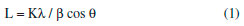 ![]() Figura 3. Tamanho do cristalito em funçao da concentraçao do íon Eu3+ e Bi3+