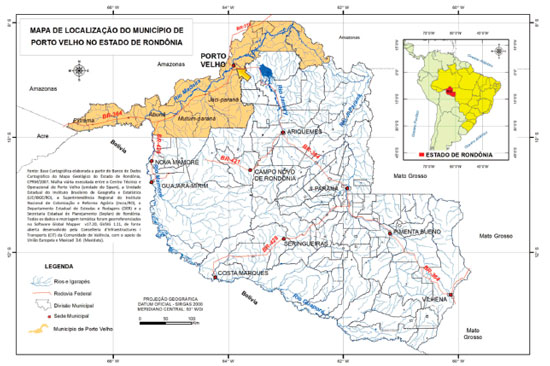 PARTE EXPERIMENTAL Area de estudo A área de estudo está localizada no município de Porto Velho, Estado de Rondônia (Figura 1) que está sob influência do clima do tipo Aw - clima tropical chuvoso, com média anual da precipitaçao pluvial variando entre 1.400 e 2.500 mm/ano, e a média anual da temperatura do ar entre 24 e 26 ºC, sendo que as maiores precipitaçoes ocorrem nos meses de dezembro a março e o período de estiagem se estende de julho a setembro.23