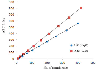 ![]() Figure 5. ABC indices of Cu2O and CuO showing linear increase with number of formula units (at x-axis)