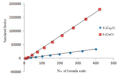 ![]() Figure 6. Sanskrit indices of Cu2O and CuO showing linear increase with number of formula units (at x-axis)