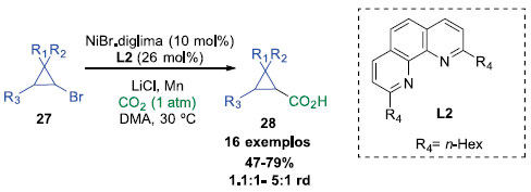 ![]() Esquema 6. Carboxilaçao de brometos de ciclopropila