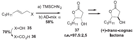 ![]() Esquema 9. Síntese total da (+) trans-cognac lactona