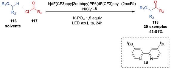 ![]() Esquema 30. α-acilaçao fotocatalítica de éteres.