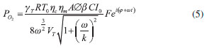 A Equaçao 2 indica a expressao geral da variaçao de pressao dentro da câmera fotoacústica, quando o mecanismo de difusividade térmica é predominante na geraçao do sinal fotoacústico.26 É importante ressaltar que a coluna fronteiriça de gás, 2πµg, é que vai responder termicamente à variaçao periódica da temperatura na superfície da amostra, provocando um gradiente de pressao na camada de gás, resultando na formaçao de um pistao acústico, cuja variaçao de pressao é transformada em sinal fotoacústico, capturado pelo microfone embutido na célula fotoacústica. A Espectroscopia fotoacústica Esta técnica começou a ser aplicada no estudo da fotossíntese em 1976, por Adams M. J, ao obter o espectro fotoacústico de uma soluçao preparada a partir da clorofila extraída de folhas de espinafre.27 Dois anos depois, Rosencwaig mostrou ser possível obter o espectro fotoacústico de uma folha, colocando-a em uma célula fechada.24 Em 1986, Perondi e Miranda apresentaram a Célula Fotoacústica Aberta (OPC).28 E poucos anos depois, a OPC também foi introduzida no campo de estudo da fotossíntese.26 Entre outras aplicaçoes, a Espectroscopia Fotoacústica é empregada também na caracterizaçao das propriedades térmicas da matéria, particularmente o da medida de difusividade térmica,2,29,30 efusividade térmica e do tempo de relaxaçao nao radiativo.31 A difusividade térmica é um parâmetro que indica a velocidade com que o calor se propaga dentro da amostra, até chegar a um valorconstante. Por outro lado, a efusividade térmica indica a impedância térmica da amostra, isto é, o quanto de calor a amostra absorve de um meio externo. A capacidade térmica mostra o quanto de calor um material consegue armazenar dentro de seu volume. Finalmente, a condutividade térmica refere-se à velocidade com que o fluxo de calor incidente, que promove um aquecimento superficial na amostra, atinge as suas regioes mais frias. Todos estes parâmetros estao diretamente ligados às microestruturas da amostra e cada material apresenta propriedades térmicas únicas. Destaca-se a importância desta técnica na área de materiais biológicos, uma vez que possibilita o estudo in vivo, deixando intactas as amostras.26,32 Uma utilizaçao bem apropriada para esta técnica é no estudo da fotossíntese, que se refere à utilizaçao de energia química pelas plantas, para a produçao de substancias orgânicas a partir do gás carbônico (CO2) e da água (H2O). Na fase fotoquímica, durante a quebra das moléculas da água, que se formam as moléculas de oxigênio que sao liberadas na atmosfera. Particularmente, o processo da fotossíntese implica em liberaçao - ou absorçao - de gás, o que produz mudanças de pressao no volume restrito da câmara fotoacústica. Este efeito de variaçao de pressao foi chamado de efeito bárico. A componente bárica demora um período de tempo para ser observada, devido à complexa cadeia de reaçoes fotoquímicas que deve ser percorrida até a liberaçao do O2.33 Segundo Barja,19 a evoluçao do oxigênio é provocada na expansao isobárica do espaço intercelular com subsequente compressao adiabática do gás na câmara fotoacústica. Assim, pode-se medir a componente fotossintética da variaçao de pressao, isto é, P02, de acordo com Equaçao 3 ![]() onde R é a constante dos gases e ψ(t)é a oscilaçao média da concentraçao molar em torno do valor P0/RT0. Esta variaçao da concentraçao se relaciona com o fluxo modulado de oxigênio, q3, na interface (z = l2 + l3) entre a parede celular e o espaço intercelularde acordo com a Equaçao 4. ![]() onde Depois que as clorofilas absorvem a luz incidente, o oxigênio é formado após uma sequência de reaçoes de oxirreduçao. O sistema de fotossíntese possui clorofilas a e b em quantidades semelhantes, captando comprimentos de onda mais curtos que os captados pelos sistemas que possuem alta concentraçao de clorofila a, captando essencialmente radiaçoes de comprimento de onda longo. Podemos escrever a componente fotossintética PO2 da variaçao de pressao na seguinte Equaçao 5: ![]() onde o termo complexo Fei(φ+ωt) depende da constante de tempo k de evoluçao de O2 das permeabilidades das membranas e também das espessuras l1, l2 e l3, conforme a Figura 2. A pressao devida à taxa de evoluçao do O2 (PO2) é determinada por meio da dependência do ângulo de fase φ da atividade fotossintética com a frequência de modulaçao.